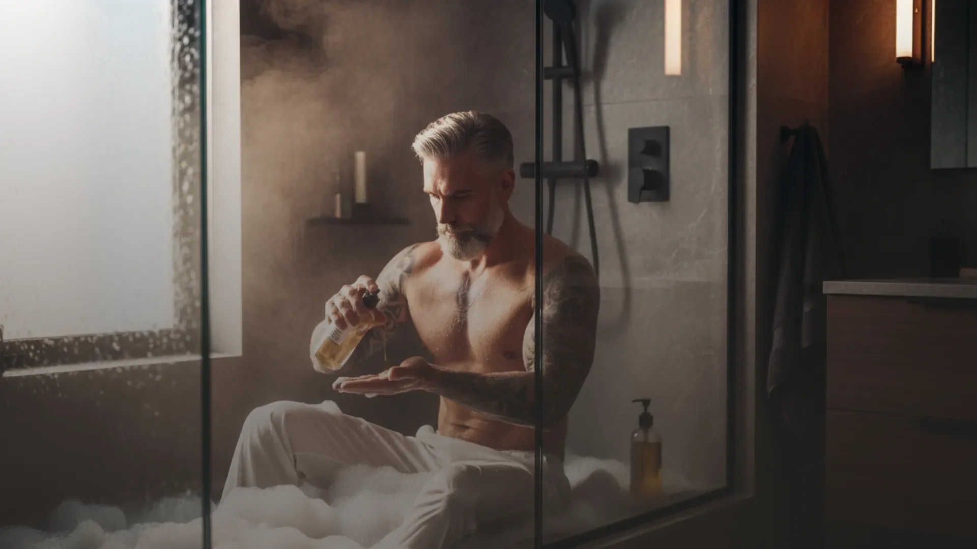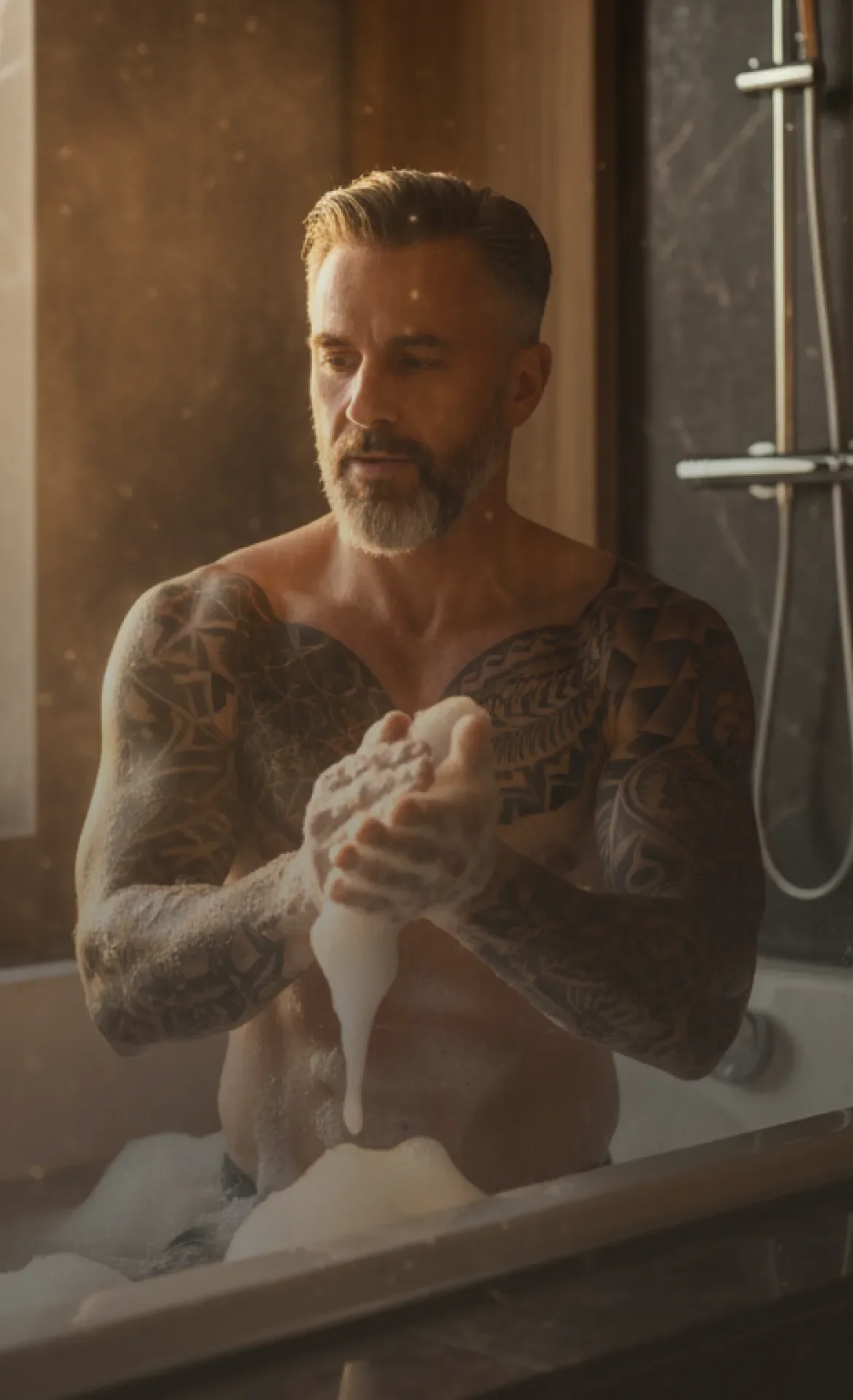 Apply to wet skin and massage to activate the soft foam, then rinse well. Using a plush loofah sponge elevates the experience, as the wash folds into a cloud-like lather and the fragrance rises gently with the steam.