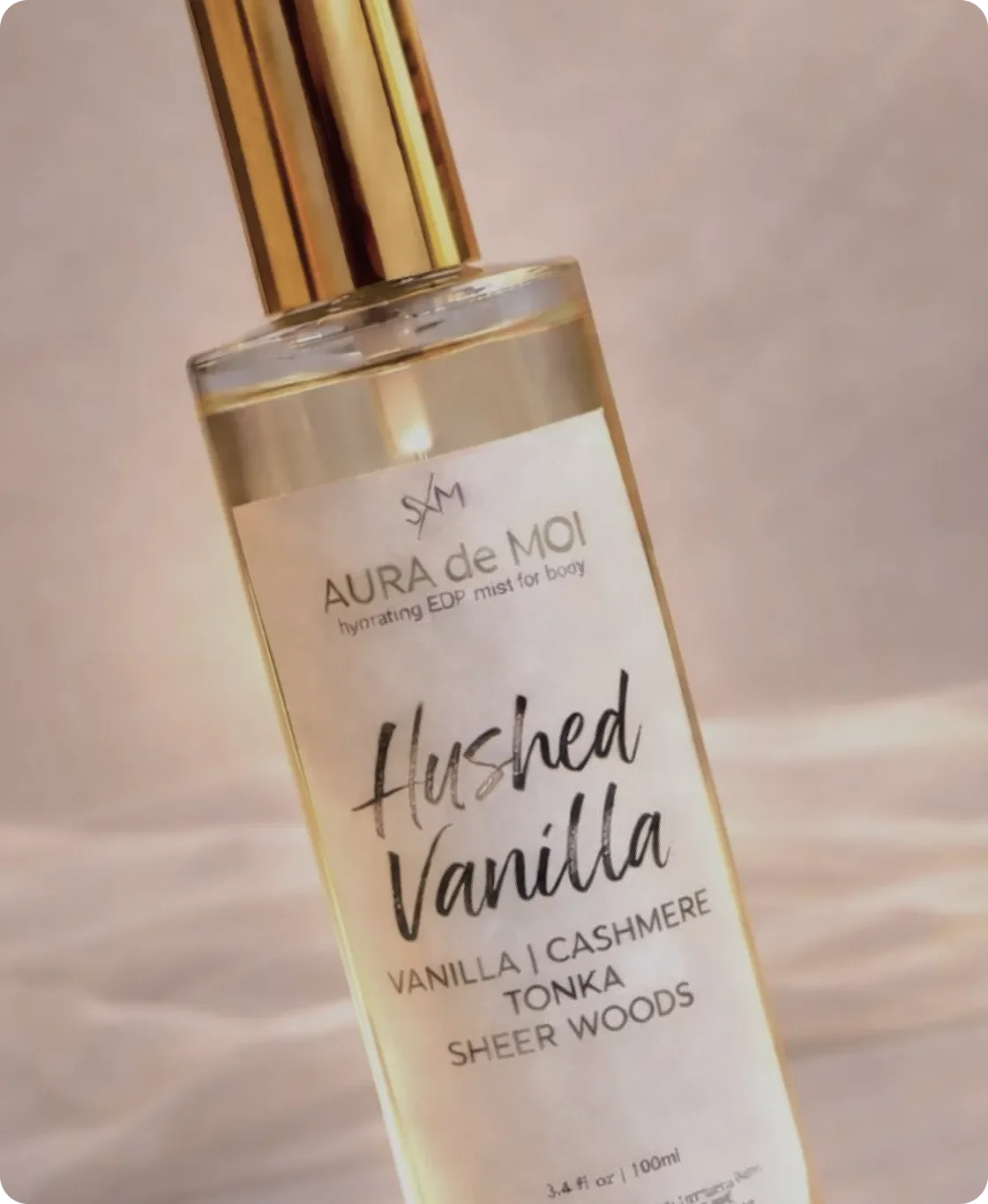 A soft blush of morning light. Pink pepper and saffron warm the air as florals and vanilla bloom gently on the skin — romantic, feminine, quietly radiant.